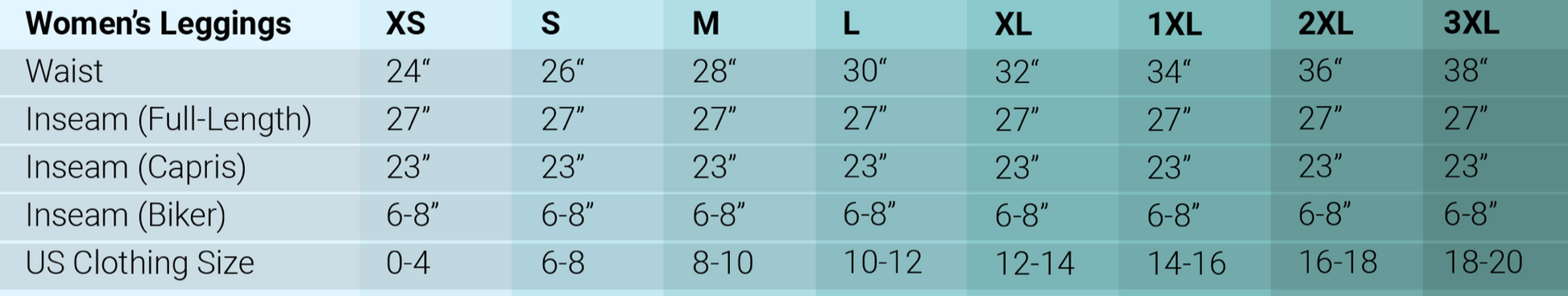 *PROTIP: Legging runs true to size. Refer to size chart*